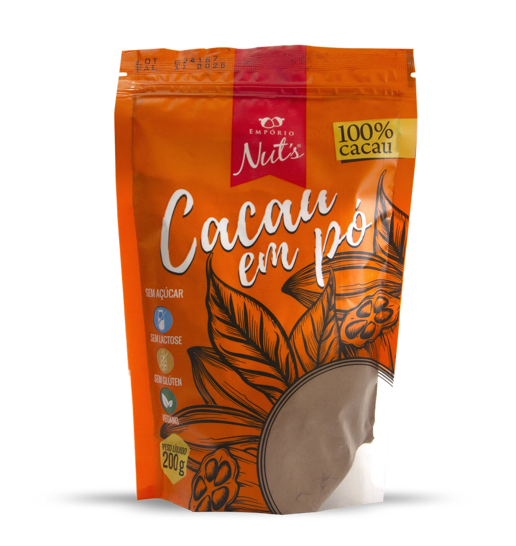 O Cacau em Pó é um produto natural, puro e sem adição de açúcar, sem lactose, sem glúten e vegano. É um alimento rico em vitaminas (como vitamina C e vitamina E) e minerais (como cálcio, fósforo, ferro, potássio e sódio), além de conter boas quantidades de fibras.