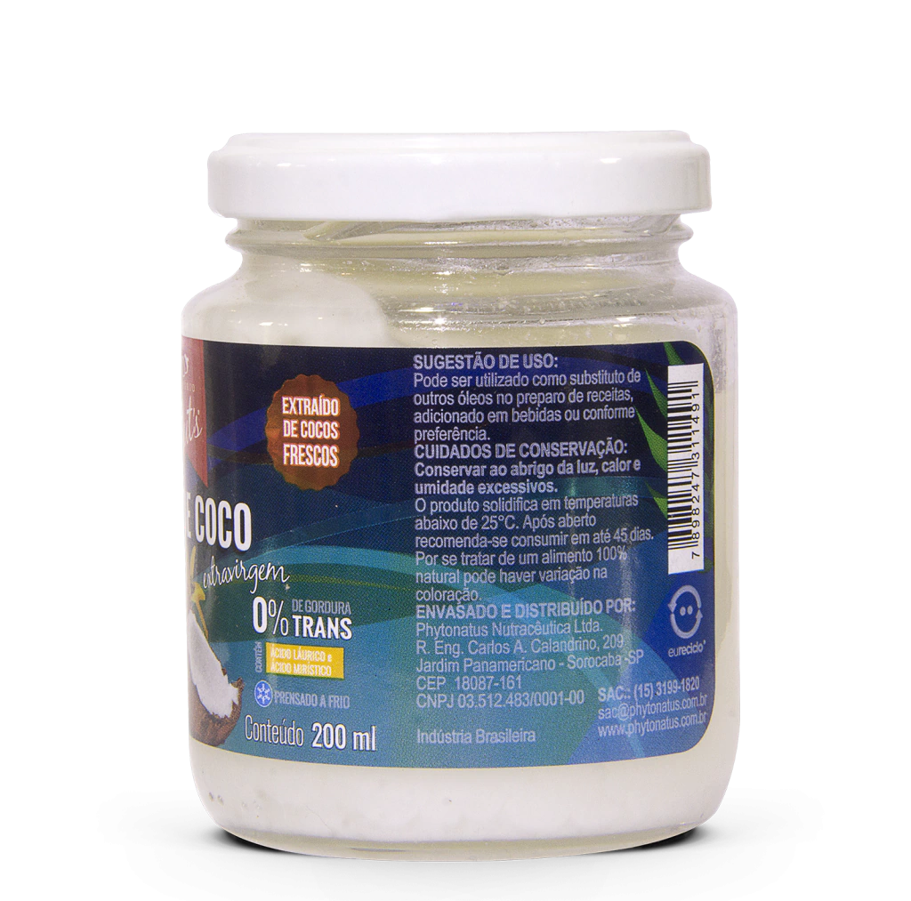 O Óleo de Coco Extravirgem é natural e extraído de cocos frescos e prensado a frio, preservando seu aroma, sabor e valor nutricional. Possui acidez máxima de 0,3% e é o único alimento vegetal que contém ácido láurico, presente também no leite materno, o que faz com que fortaleça a imunidade. Por ser um alimento 100% natural, pode haver variações na coloração.